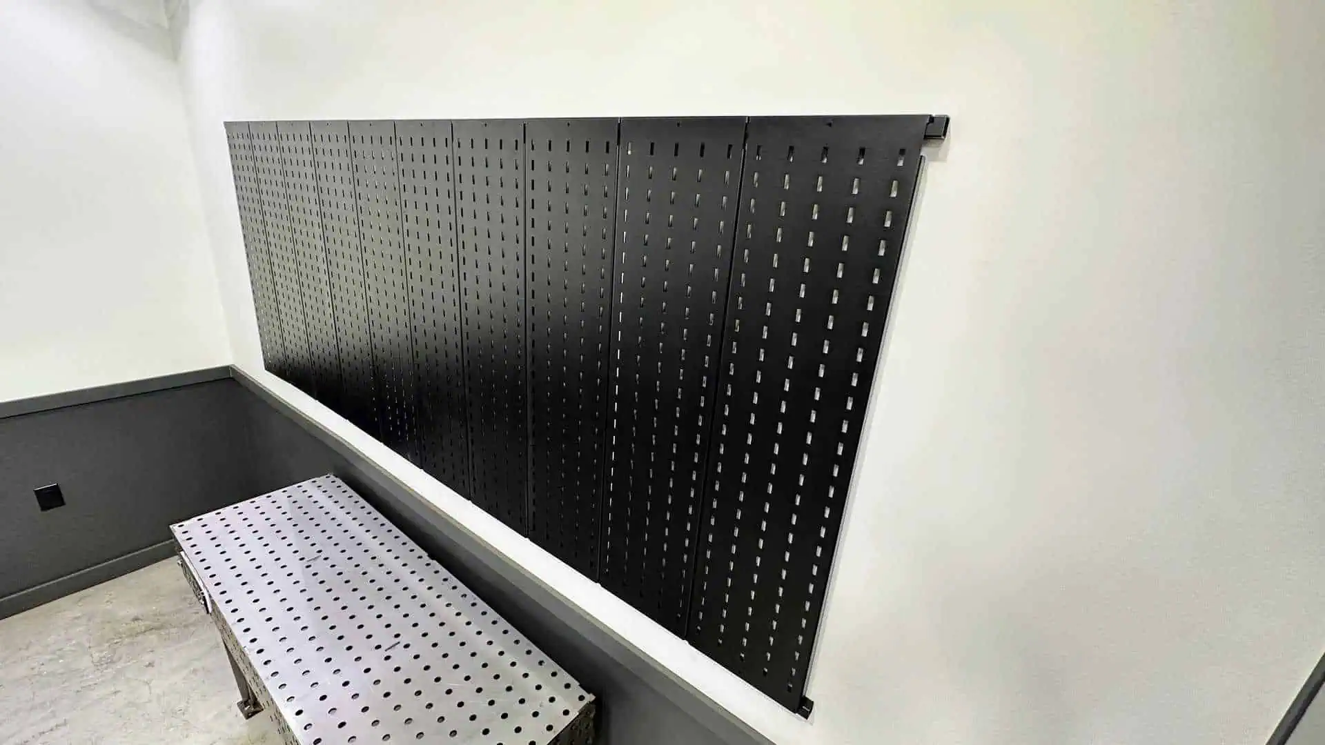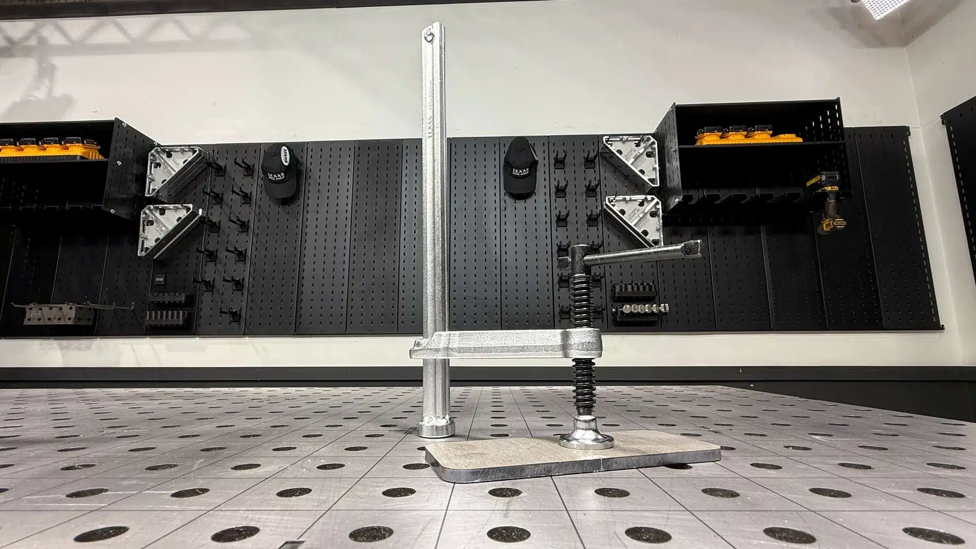 The ModPro system turns any welding table or wall into modular storage. Panels mount to your table or wall — accessories snap in and hold tight.