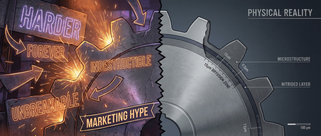 These are not subtle implications buried in fine print. These are the headline claims driving purchase decisions on tables that cost $3,000 to $15,000+. So let’s examine each one against what plasma nitriding actually is, physically and chemically, and see how many of these claims survive contact with metallurgical reality.