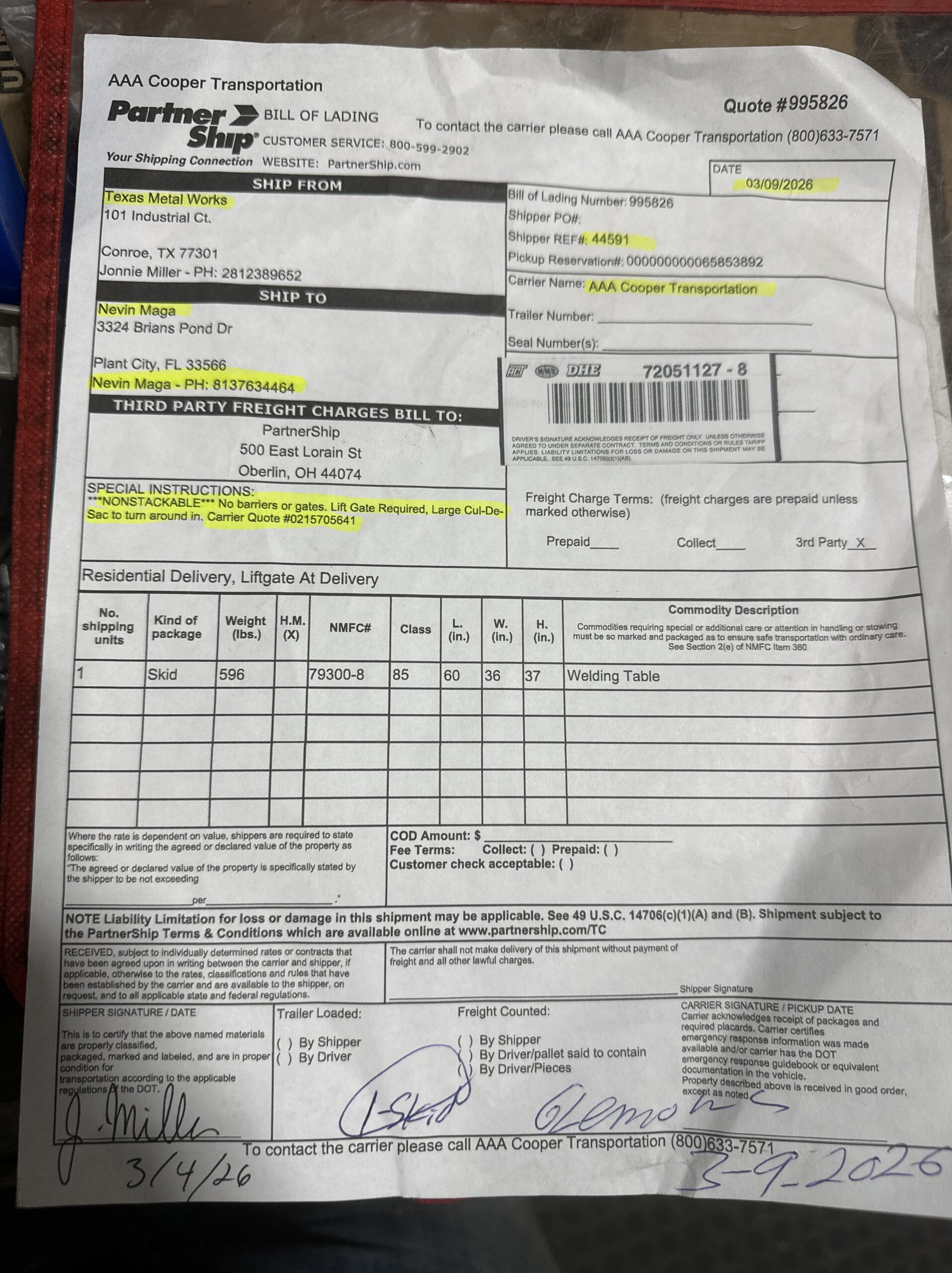 Shipping Over $800