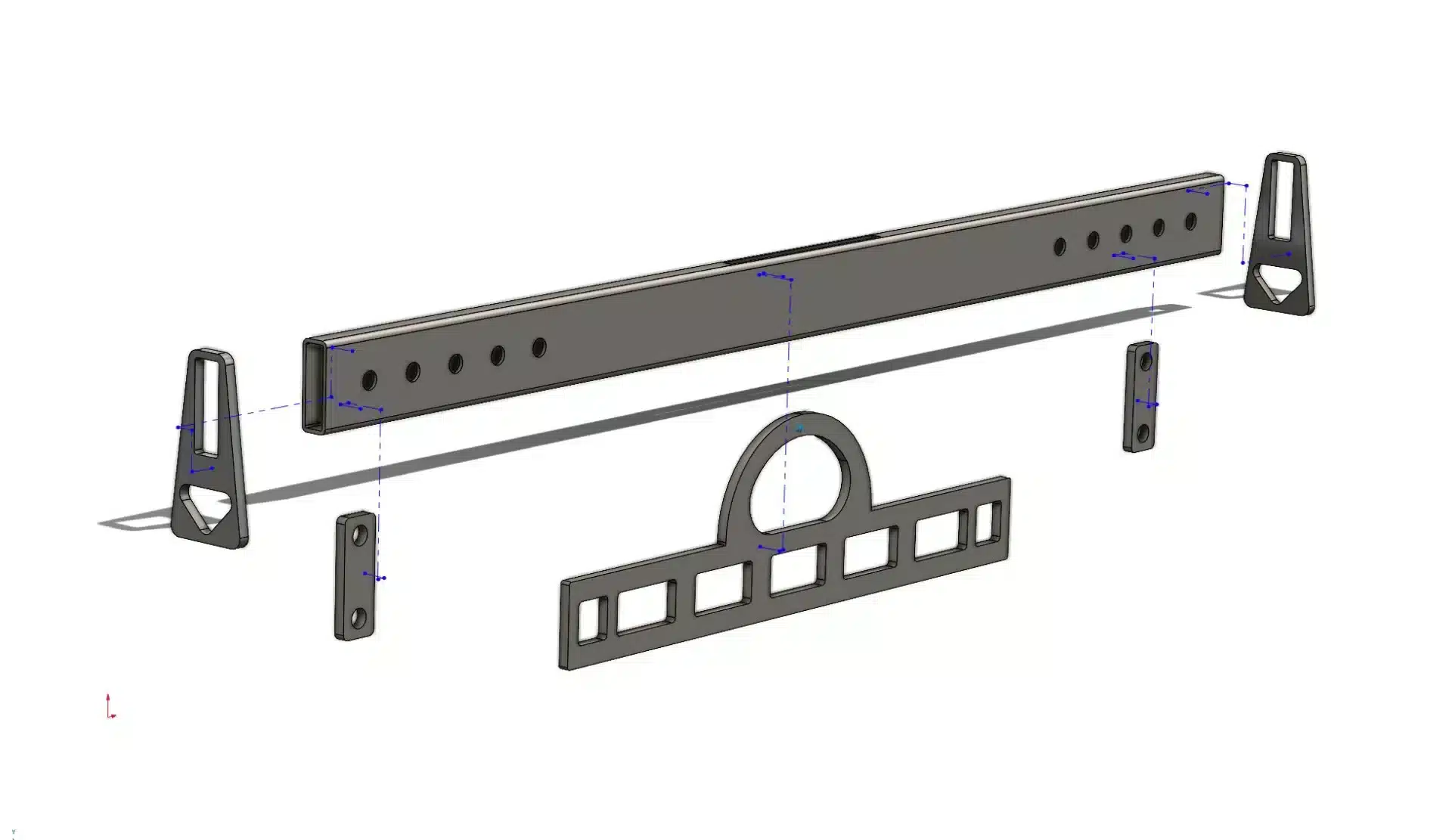 Two pieces are designed to slip over the tube and be welded near the end to serve as stands, and also additional lifting points. While two bars can be bolted into any of the holes in the tubing to be used as hangers.