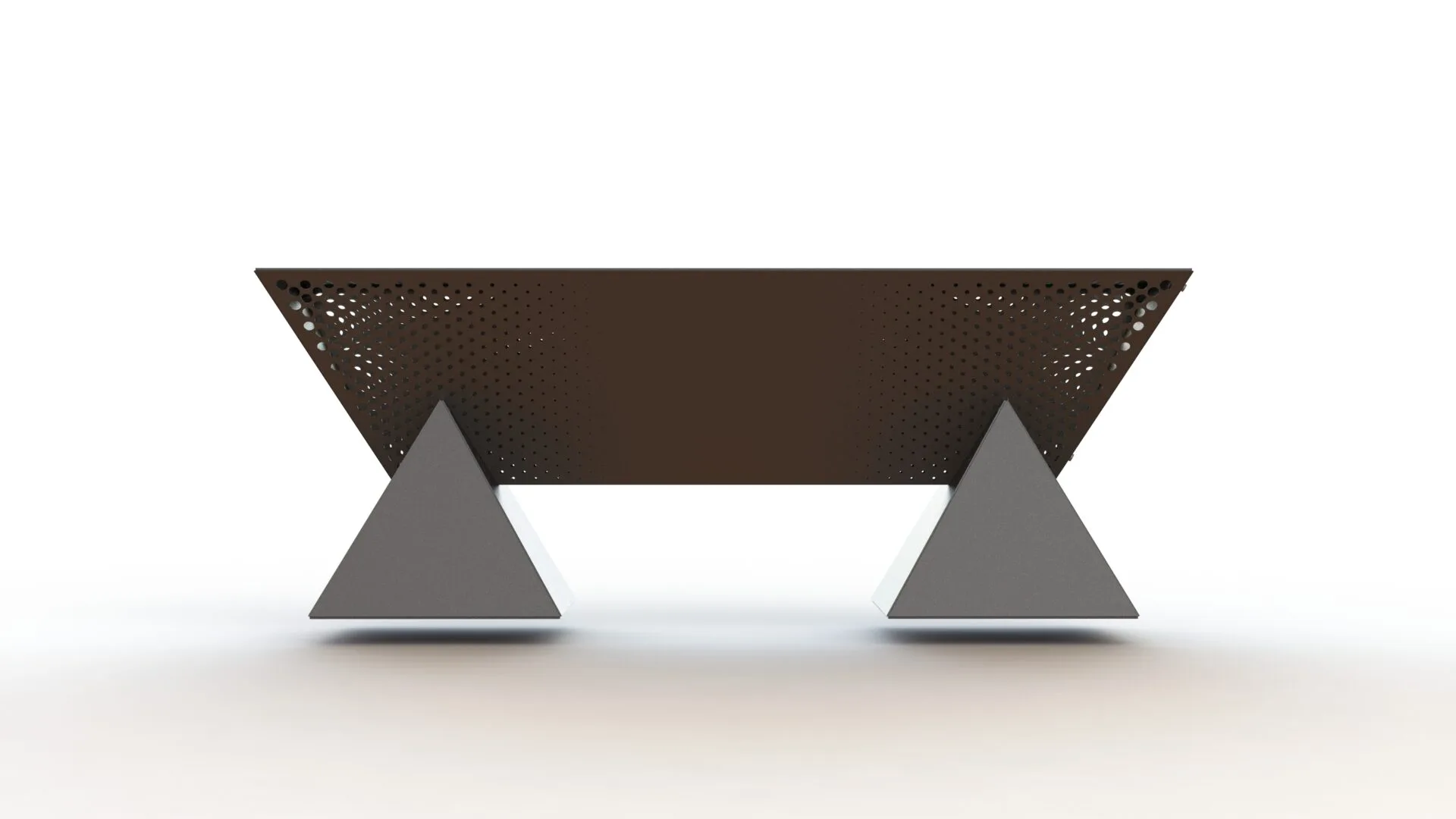 Meet JEOMETRI, an ultra-modern, hyper-minimalist bench shaped like an inverted triangle. The top seat slopes dramatically downward to a single point, creating a striking geometric form. It’s supported by two pyramid-shaped bases—one on each end—that cradle the bench like a piece of art on display. Available in multiple widths, JEOMETRI is designed to be the focal point of any room, capturing attention with its bold, museum-worthy silhouette.