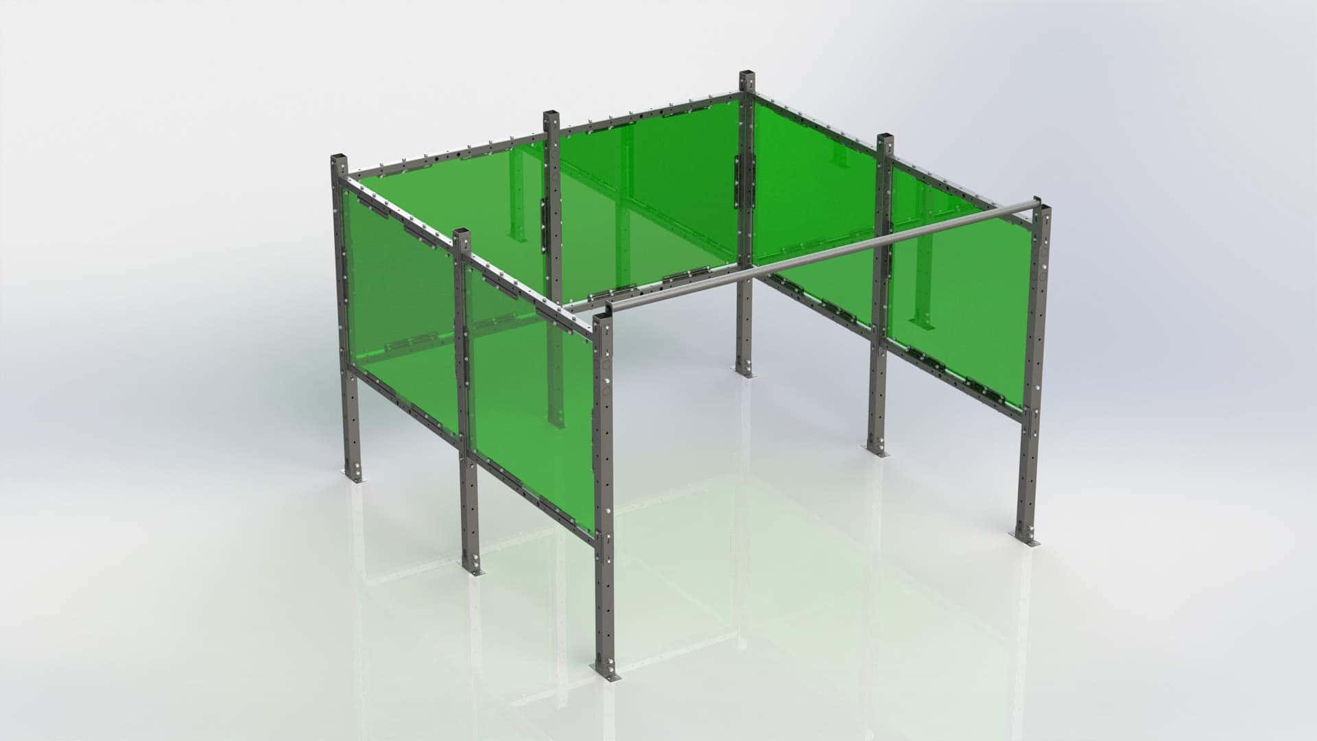 In a nutshell, our welding booths are assembled on site from bolt together components that are endlessly reconfigurable. There are three primary components to our system: