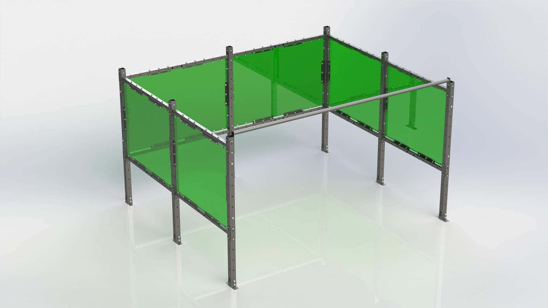 In a nutshell, our welding booths are assembled on site from bolt together components that are endlessly reconfigurable. There are three primary components to our system: