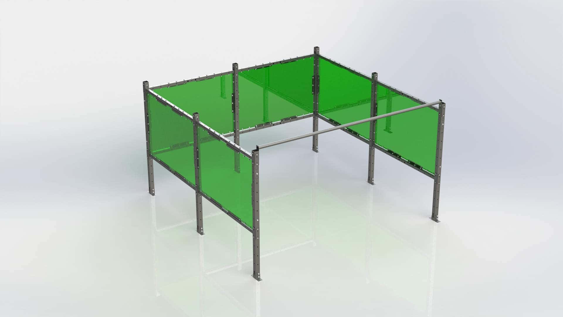 In a nutshell, our welding booths are assembled on site from bolt together components that are endlessly reconfigurable. There are three primary components to our system: