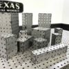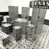 Expand your work area with our riser block family. Use your imagination and place these five-sided risers vertically or horizontally. Each 5/8” precision hole can be used with our clamps, stops, pliers and other tooling. Mount to the top of our table to create custom jigs for your projects. Join multiple blocks to create beams. Attach tableside to expand horizontally. Made from 1/4 A36 HRPO, these blocks are stout — don’t drop them on your toes!