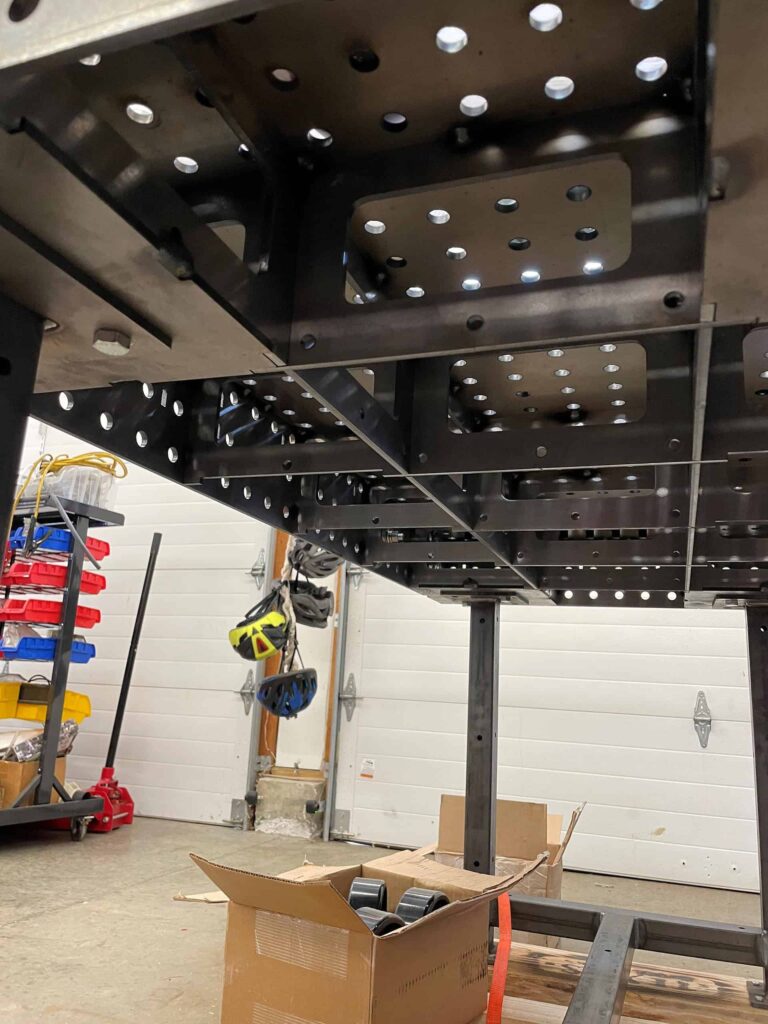 Only after securing the top to a reference surface do we add the ribs and sidewalls and secure them by bolting everything firmly in place before locking it in with hundreds of weld points.